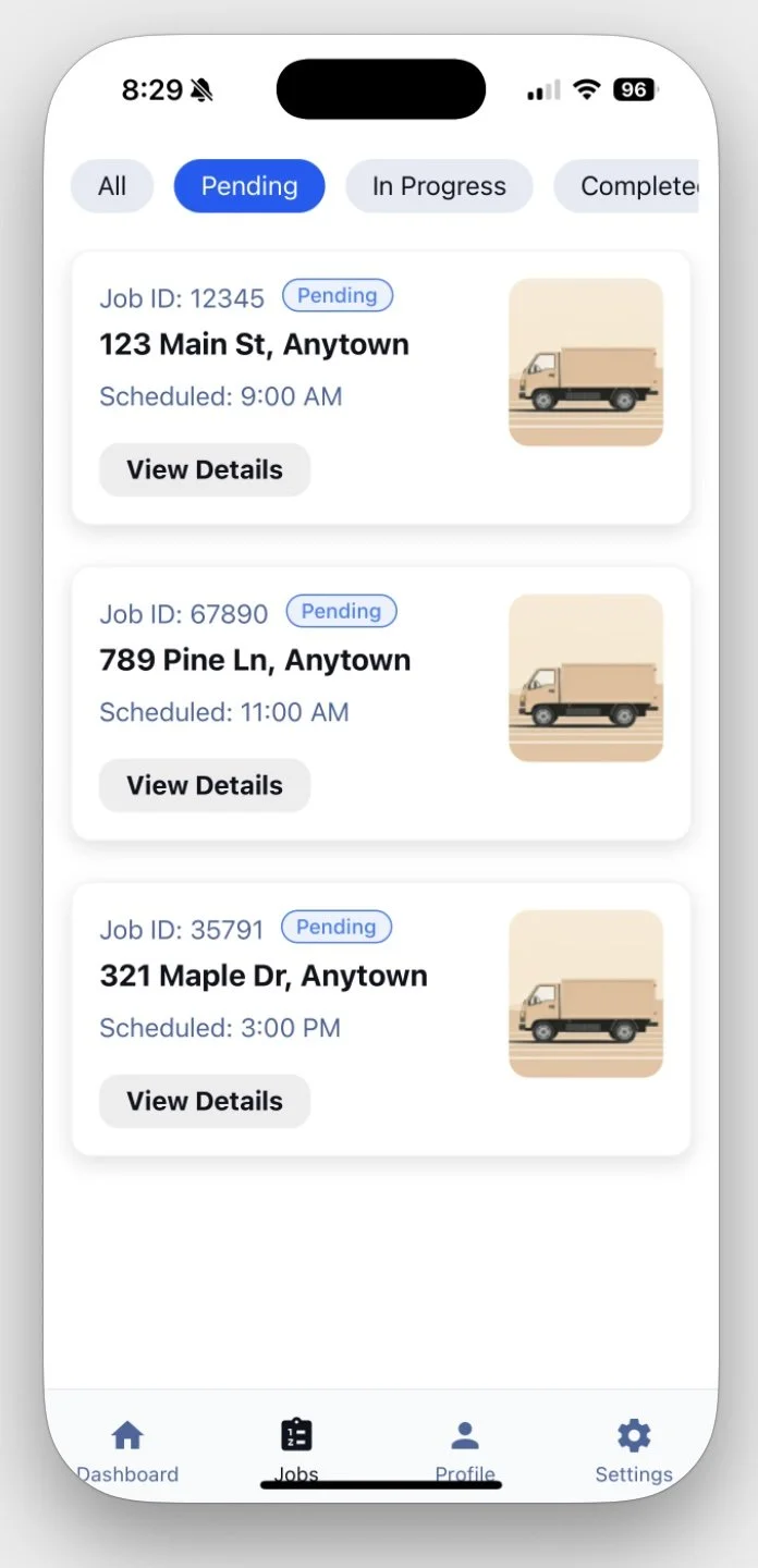 Compliance Tracking – Insurance, licenses, and certifications stored and verified in one dashboard.